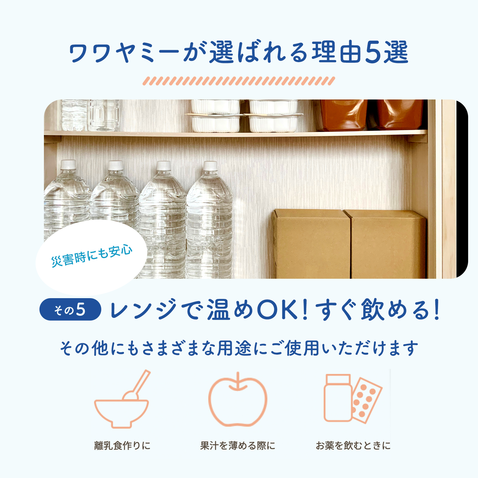 ミルク作りに、調乳水として、日々のミルク作りの負担が軽減されます。