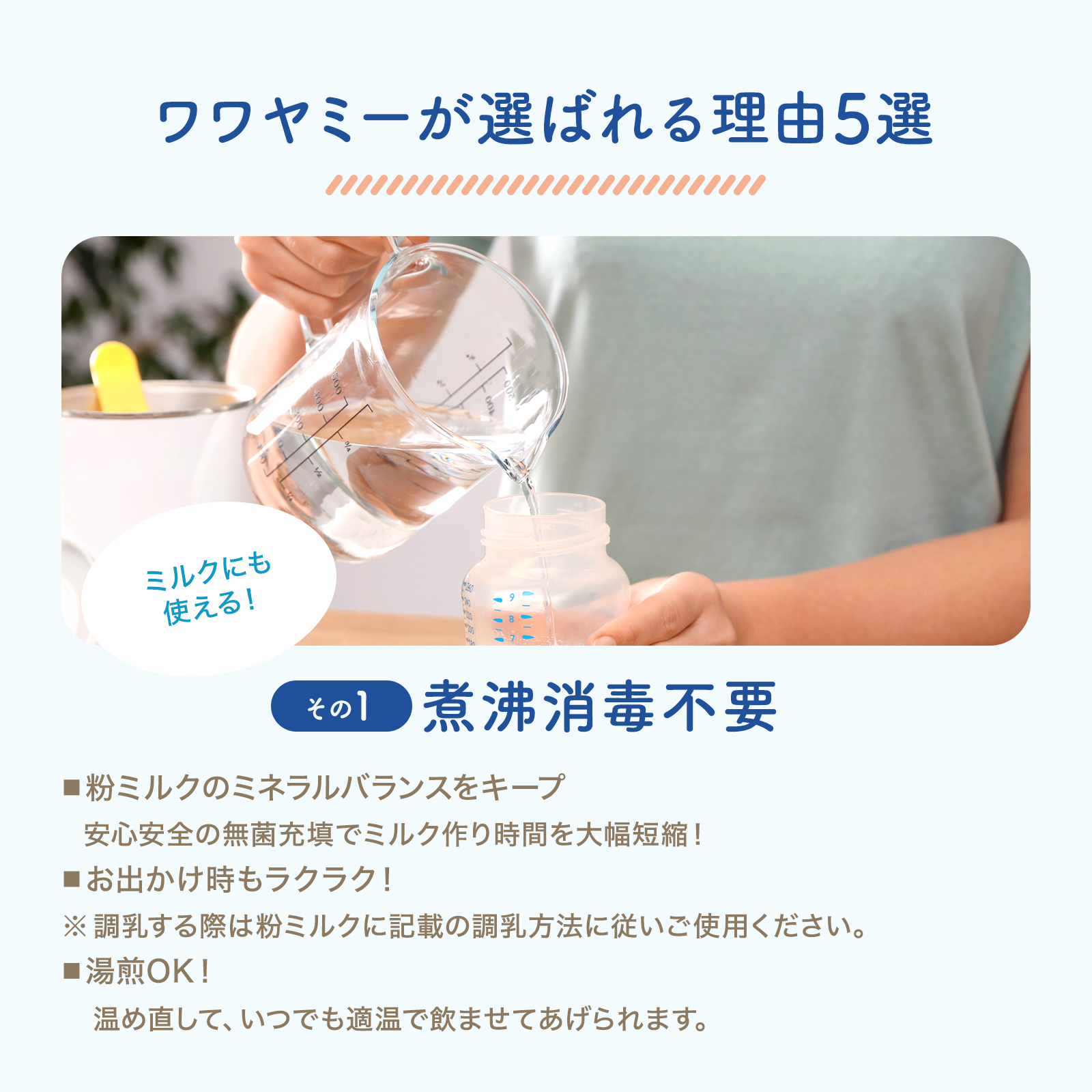 粉ミルクのミネラルバランスをくずさない、調乳に適したお水です。