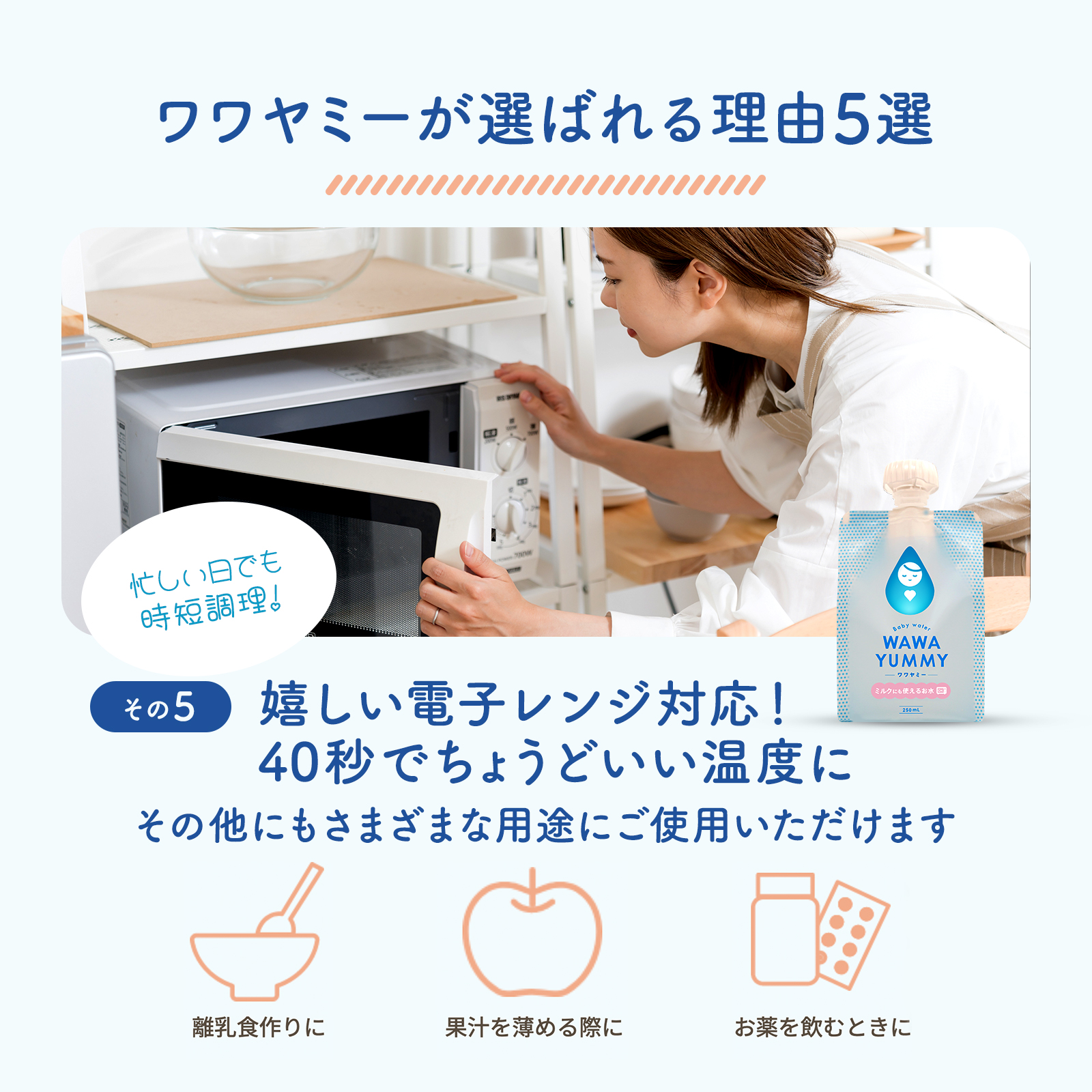 ミルク作りに、調乳水として、日々のミルク作りの負担が軽減されます。